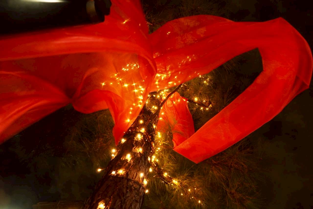 代官山の一角にある緑豊かで清々しい風の通る小道を舞台に、ログロードの木々をクリスマスの装いに仕立てました。