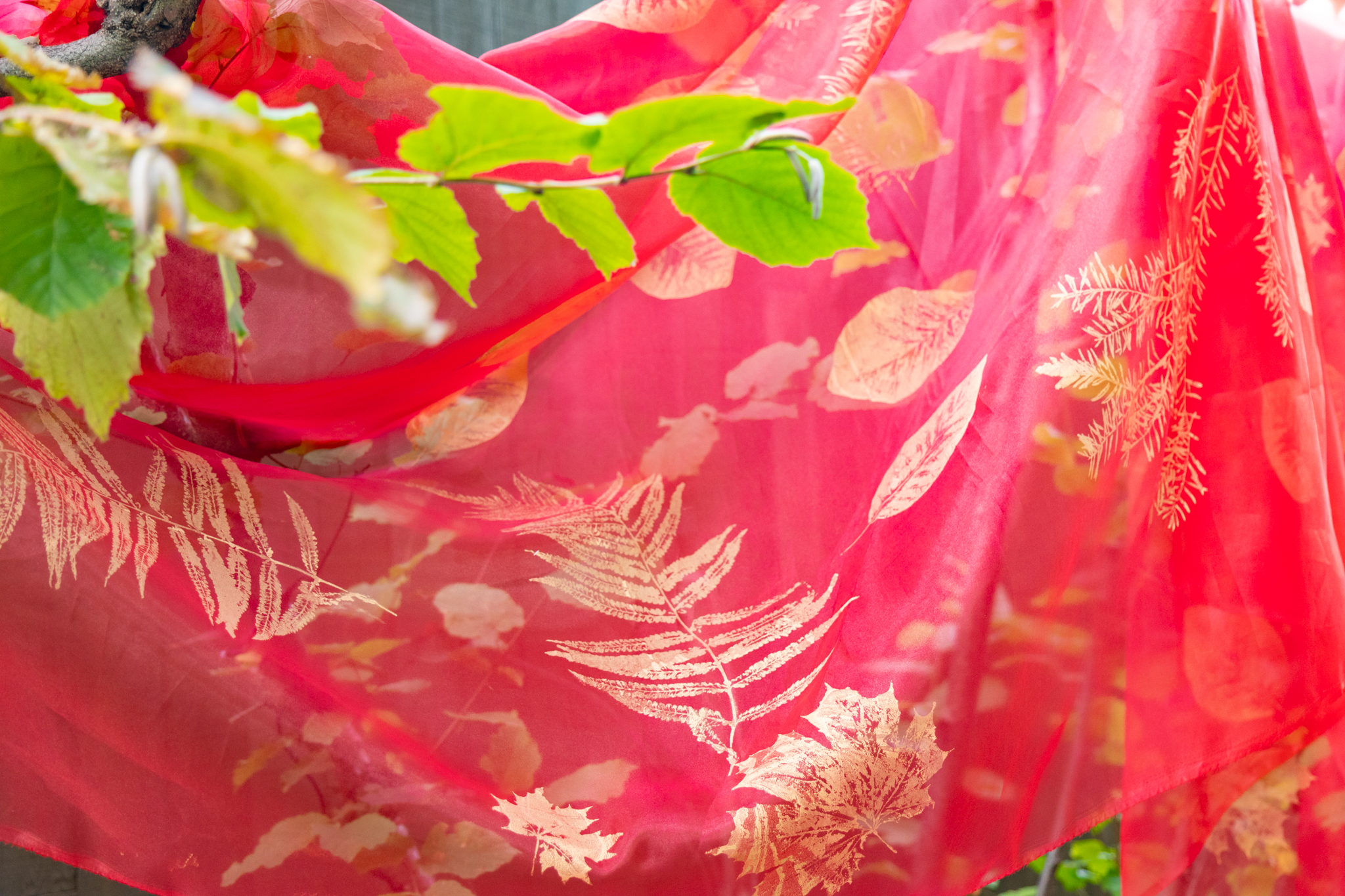 それぞれの美しい形をログロードの植栽Log(記録)としてオーガンジーに 1 枚ずつ手刷りしました。
