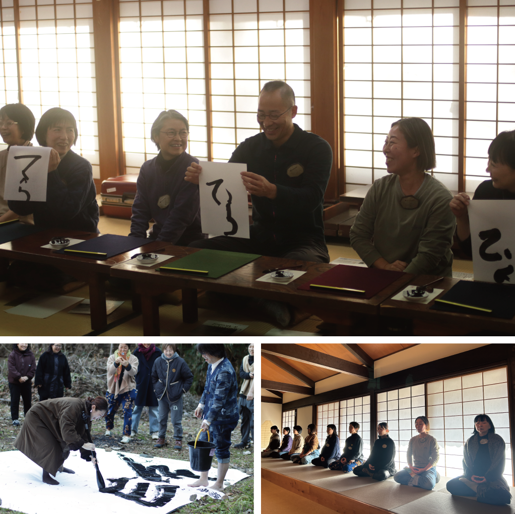 1日の流れ:am:朝のブレスト/坐禅/昼食/pm:書楽/ダイアローグ