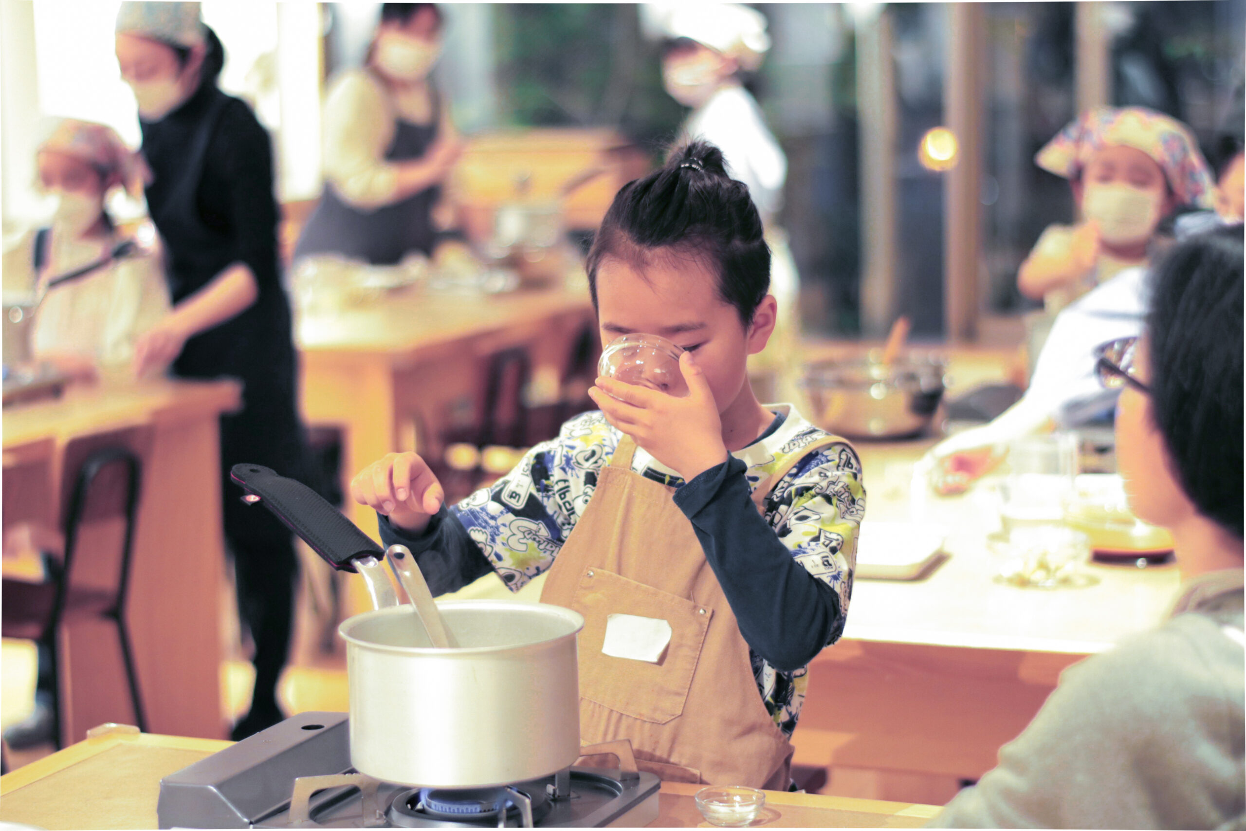 中高生の来館も多い「代官山ティーンズ・クリエイティブ」では、学校帰りにお腹を空かせて遊びに来るこどもたちと一緒におやつやごはんを楽しみます。料理家や食にまつわるクリエイターに参画いただき、「食のプロ」の話を聞いたり技を教わったり、貴重な経験をしながらみんなで楽しむすてきなひととき。おいしいにおいが漂う幸福な空間をみんなで創っています。